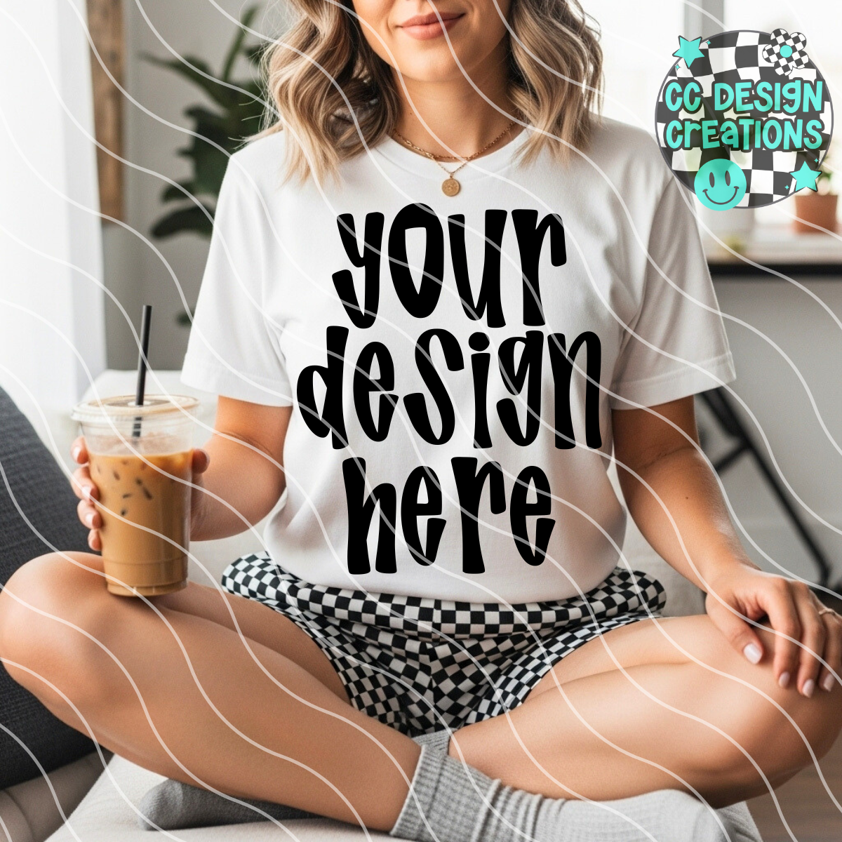 White Tee Checker Shorts MOCK